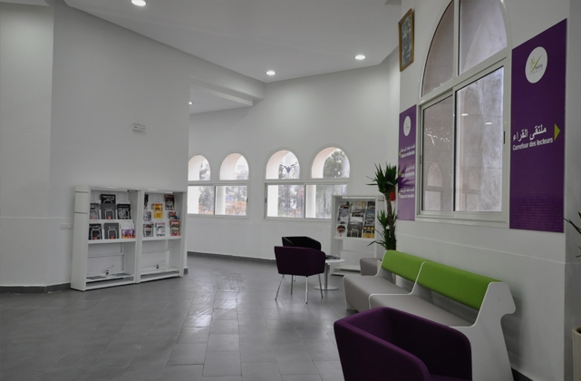 La médiathèque de Tanger a ouvert ses portes en décembre 2013, elle est située dans un quartier fréquenté, dans les locaux réhabilités d’un ancien établissement scolaire du début du XXème siècle (école Sidi Mohammed Ben Abdellah à Ain Ktiout). Elle offre une superficie utile de 730 m2 partagée entre 6 espaces équipés, chaleureux et fonctionnels : kiosque, espace braille, espace enfants, espace multimédia, salle de formation et salle polyvalente.